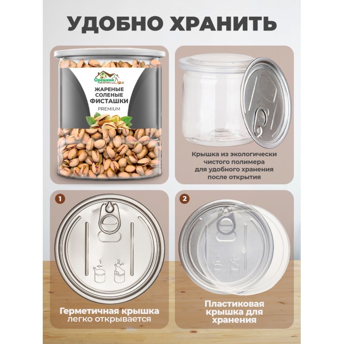 Отборные фисташки жареные соленые обладают высокой калорийностью, содержащий до 60 % жирного масла, до 18 % растительного белка и углеводы, в сочетании с высоким содержанием необходимых человеку витаминов, минеральных веществ и аминокислот. Они содержат много витамина Е, известного природного антиоксиданта, омолаживающего организм. Польза фисташек для организма. Фисташки особенно полезны, технология их обработки не предполагает никакого постороннего вмешательства, а это значит, что данный продукт экологически чист и подходит для лечебного питания. Исключение — подсоленные фисташки, которые перед сушкой вымочены в соленой воде. Регулярное употребление фисташек, помогает при болезнях печени: нормализуются рабочие функции печени, от закупорок прочищаются желчные протоки. Если беспокоят печеночные колики, то благодаря нескольким полезным фисташкам, можно от них избавиться. Эти орехи, как дополнительное средство, помогают бороться с желтухой и малокровием. Людям, с предрасположенностью к заболеваниям сердца, следует ввести фисташки в свой рацион — это поможет укрепить сосуды и снять учащенное сердцебиение. Фисташки полезны при туберкулезе и заболеваниях дыхательных путей. Фисташки признаны отличным афродизиаком – они усиливают половую потенцию, а также повышают живучесть мужских половых клеток и их подвижность.