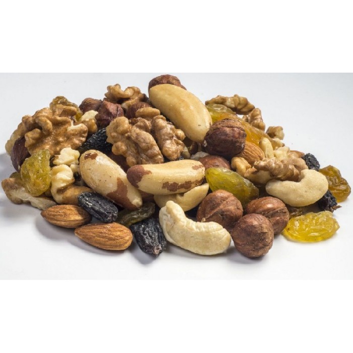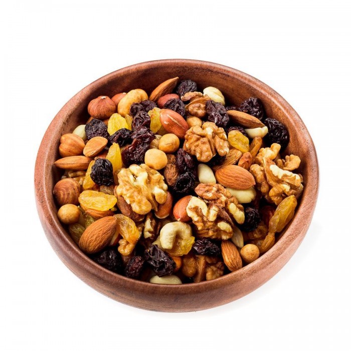 | Состав: | пекан, фундук, грецкий орех, миндаль, кешью, арахис бланшированный, бразильский орех, изюм «Джамбо» черный, изюм «Джамбо» золотой |