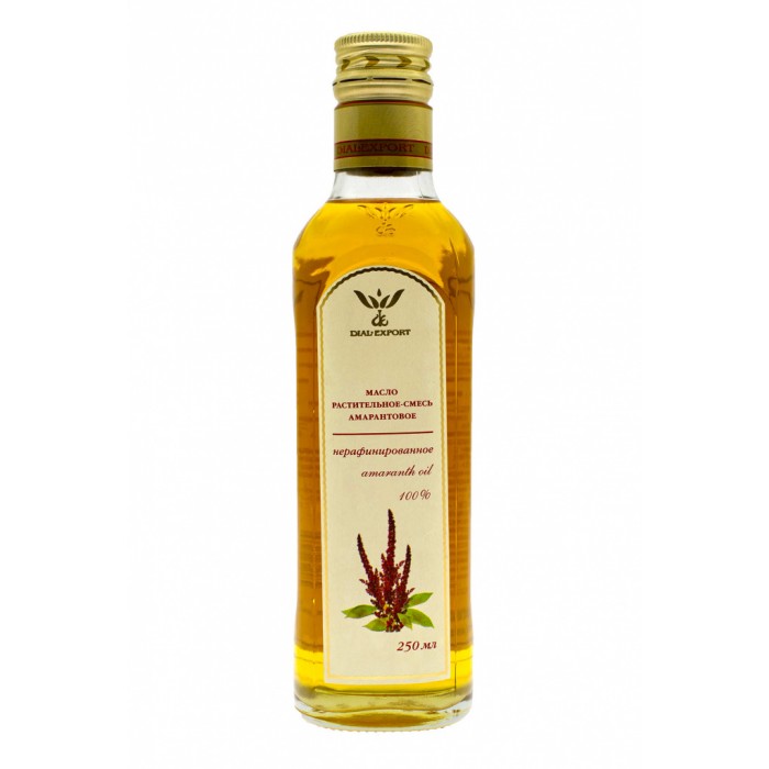 Масло амаранта Dial Export - Производится из амаранта – однолетнего травянистого растения, которое произрастает практически по всему миру. Уникальность этого продукта – содержание сквалена, вещества, которое насыщает клетки кислородом. Считается источником массы биологически активных веществ, витаминов группы В, микроэлементов. Благотворно влияет на общий метаболизм, профилактику сердечно-сосудистых заболеваний, применяется при терапии онкологических заболеваний. Нагревать не рекомендуется!