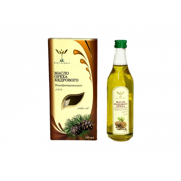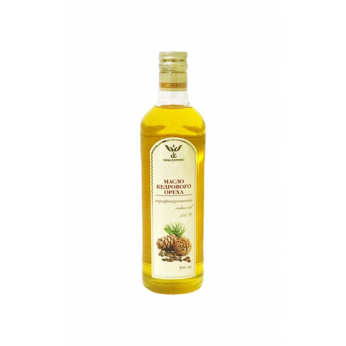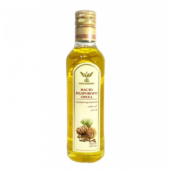 Масло кедрового ореха Dial Export нерафинированное, холодного отжима, прозрачное, светлое, с ярко выраженным запахом и вкусом кедрового ореха, добавляется в салаты, квашеную капусту, каши, выпечку, к рыбе.