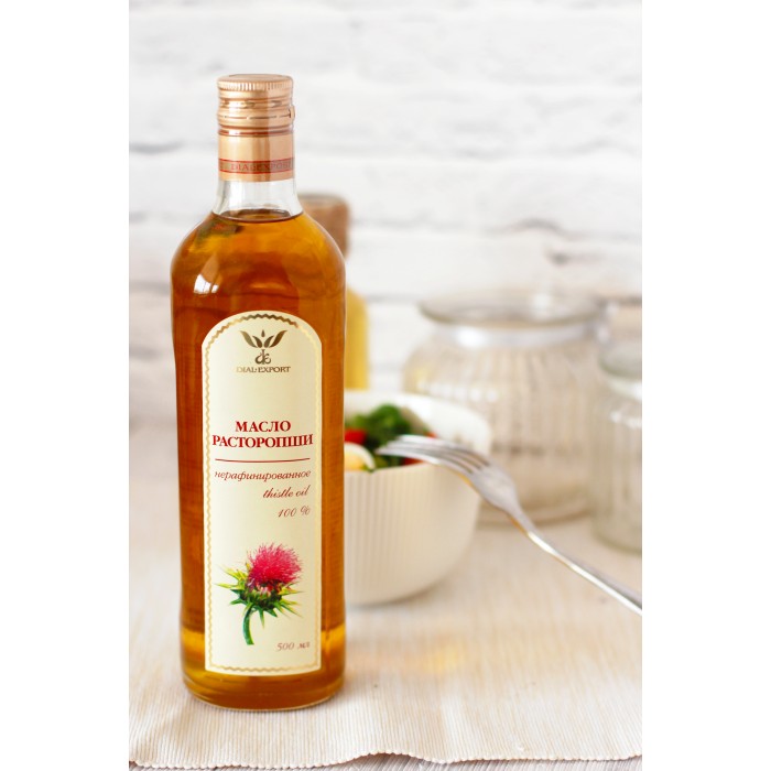 Масло расторопши Dial Export - нерафинированное, холодного отжима, от жёлтого до темно-желтого цвета, запах и вкус не ярко выражен. Прекрасное дополнение к холодным блюдам, салатам и соусам.
