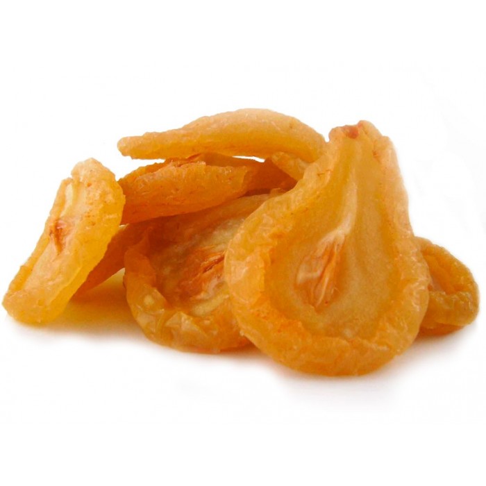 Сочные вяленые груши обладают сладким вкусом и мягкой текстурой. Вяленые груши являются прекрасным источником пищевых волокон. Также в них высокое содержание нерастворимого белка, известного как клетчатка, которая способствует нормальной функции кишечника. Груша богата витаминами C, E, и B-комплексом витаминов. Витамины C и Е обеспечивают здоровое состояние кожи и глаз, а также служат мощными антиоксидантами в организме. Вяленая груши также являются хорошим источником калия, железа и меди.